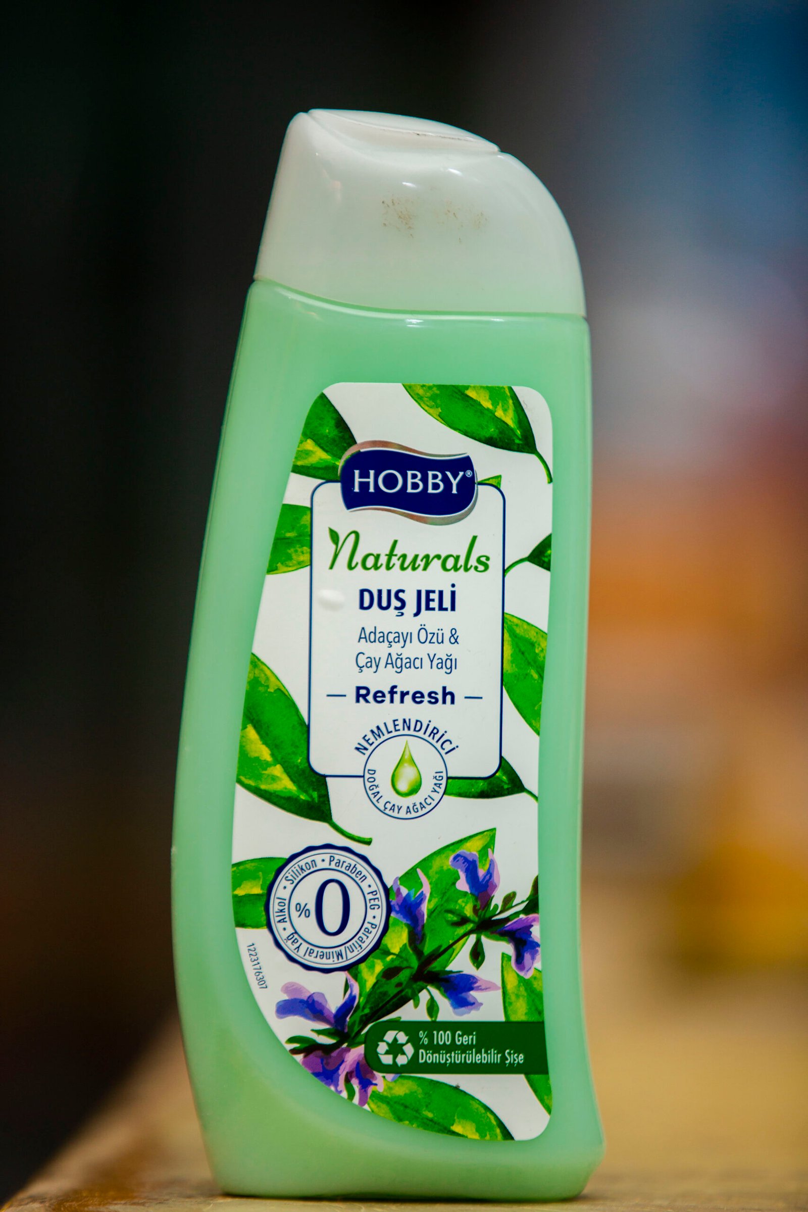 This is a shower gel from Hobby Naturals made with natural ingredients like tea tree oil and sage extract. It gently cleanses the skin, leaving it soft, fresh, and moisturized. It is free from parabens, alcohol, and dyes, and comes in a recyclable bottle.