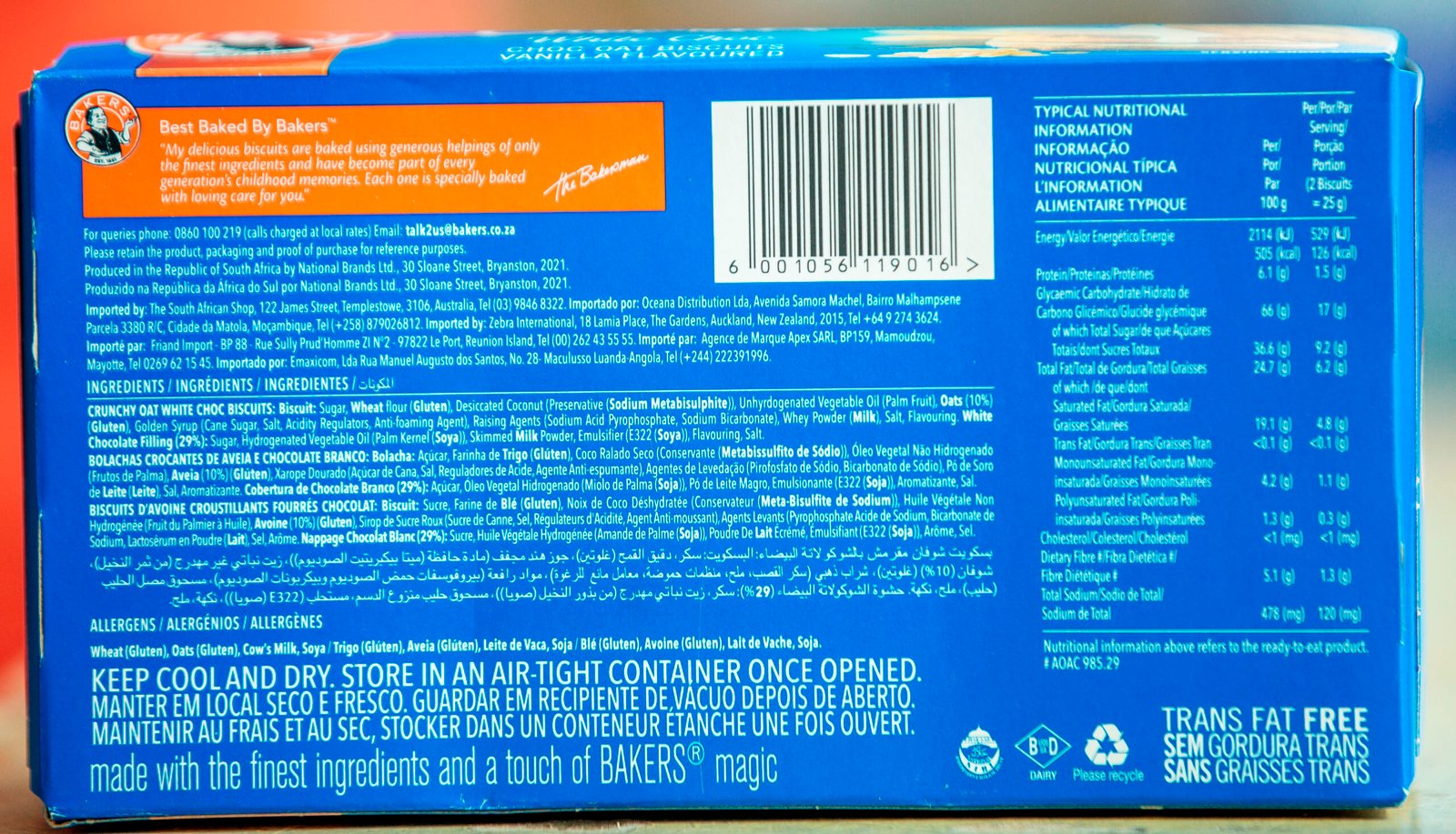| FLAVOURS | CLASSIC CHOC OAT BISCUITS, WHITE CHOC OAT VANILLA FLAVOURED |