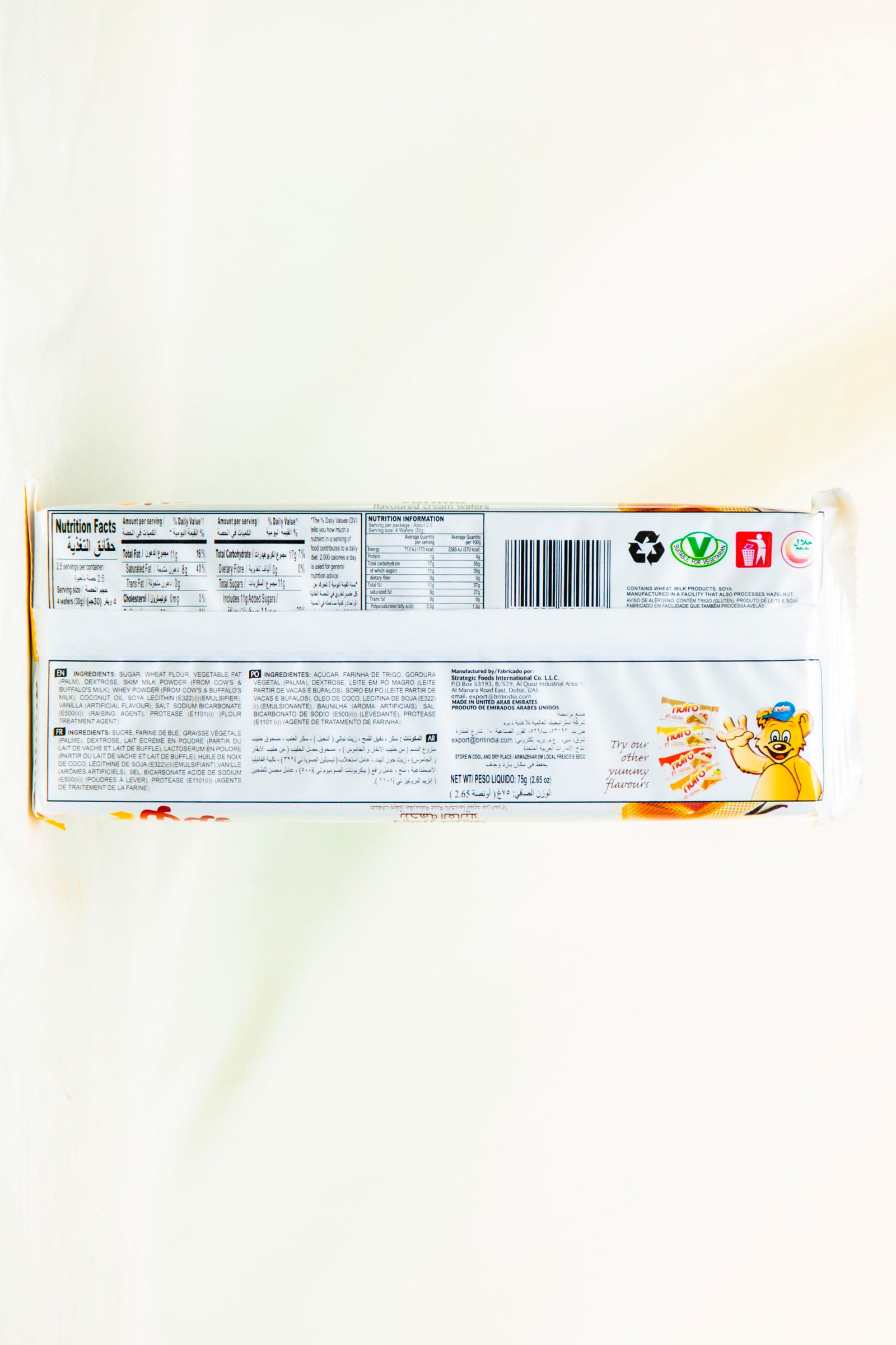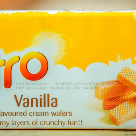 Nutro Vanilla is a delicious vanilla-flavored cream biscuit/snack with smooth vanilla cream sandwiched between crisp biscuit layers. Perfect for tea time, coffee breaks, or anytime snacking. These treats offer a delightful balance of sweetness and crunch that everyone will enjoy!