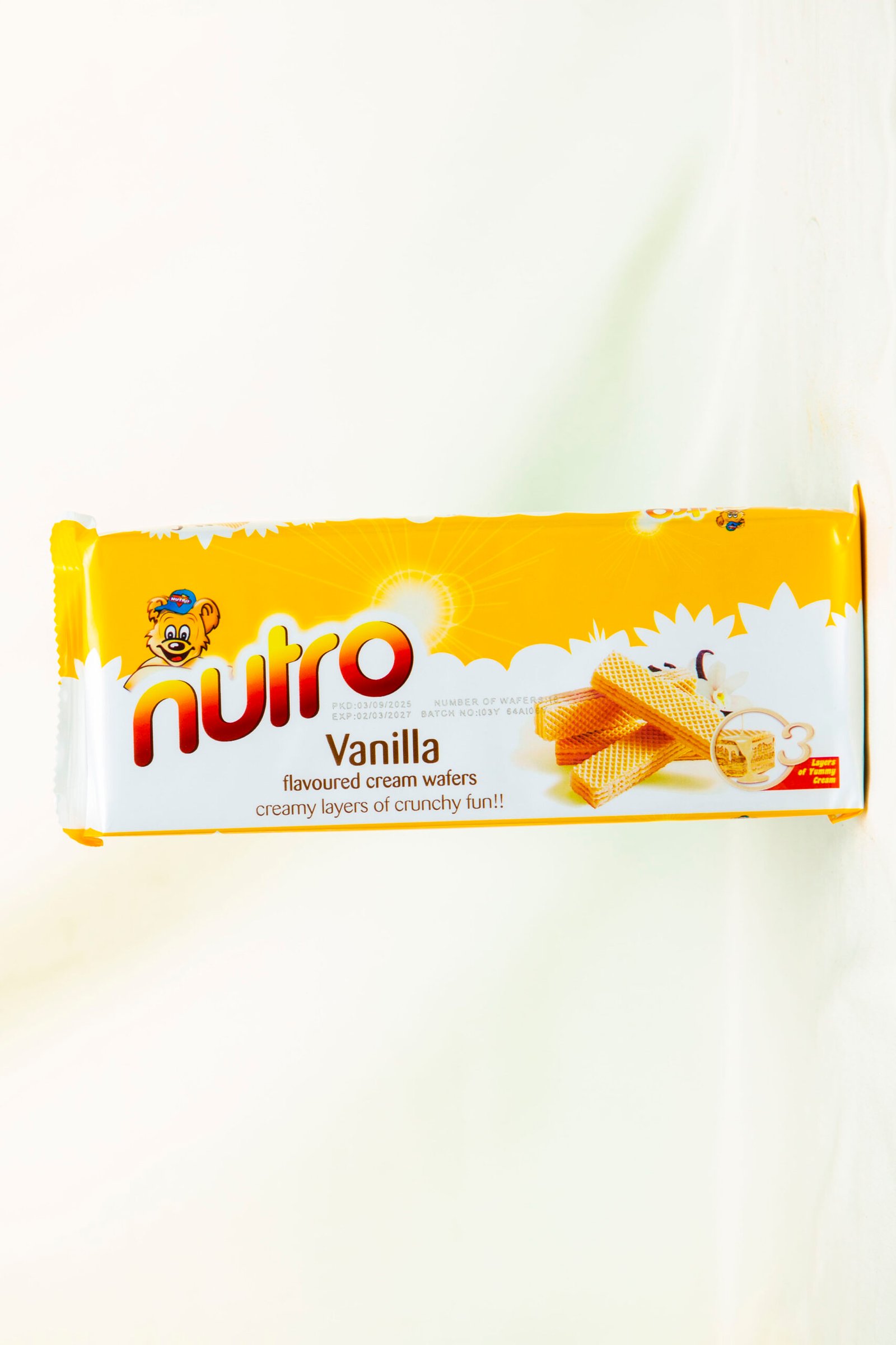 Nutro Vanilla ni biskuti tamu zenye cream ya ladha ya vanilla kati ya tabaka mbili za biskuti au wafer. Ni vitafunwa bora kwa chai, kahawa, au kama snack ya kufurahisha wakati wa mchana. Biskuti hizi zina virutubisho muhimu kama protini ndogo, wanga na sukari ya ladha tamu, na zinafaa kwa familia nzima!